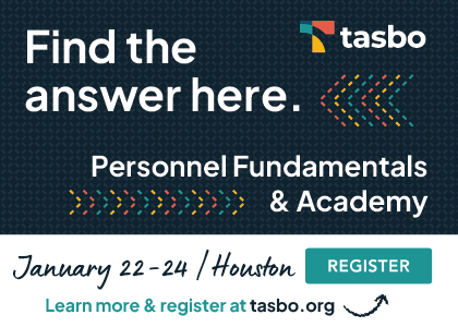 TASBO will be in Houston to offer their Personnel Fundamentals and Academy! Personnel Fundamentals (January 22) is designed for those who are just starting off in their role and focuses on terminology, best practices, reporting, deadlines, rules, and legal requirements. The Personnel Academy (January 23-24) has a jam-packed agenda including sessions on Mid-Year Contract Abandonment Process, Social Media in the Workplace: Employee Screening & Monitoring, Qualifying Uncertified Teachers, and more! Visit tasbo.org to learn more and register.